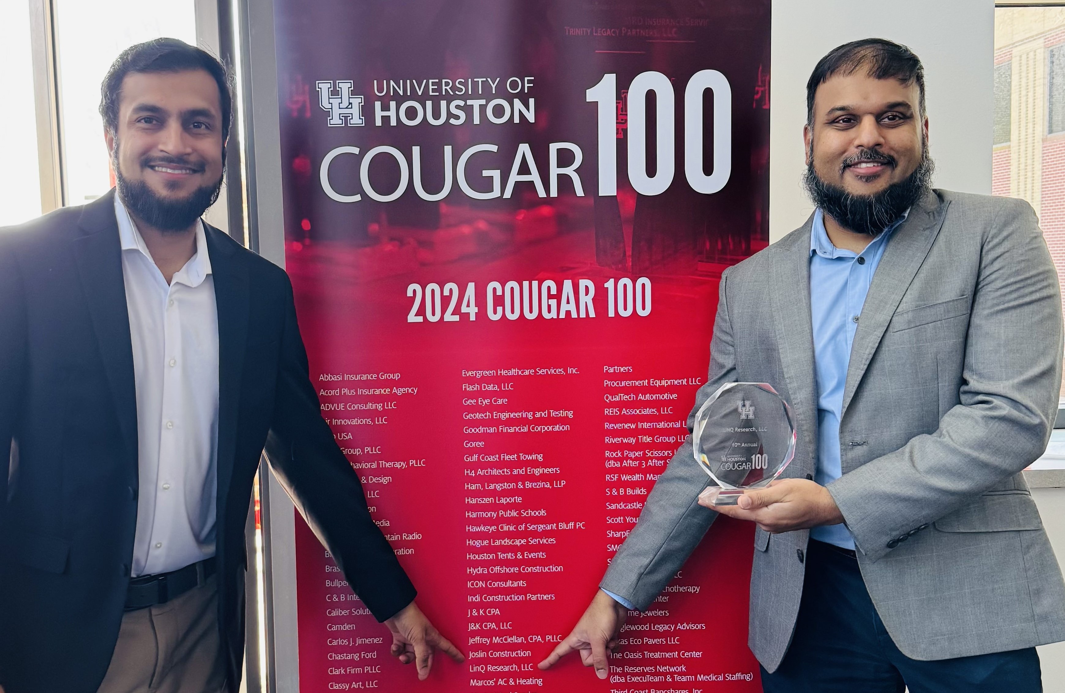 We are thrilled to share that LinQ Research LLC. has been named one of the top 100 fastest-growing Cougar-owned or Cougar-led businesses on the prestigious Cougar 100 list! This incredible recognition, awarded by the University of Houston Alumni Association, celebrates the extraordinary achievements of businesses led by UH alumni and highlights the powerful impact of their entrepreneurial spirit. "The Cougar 100 celebrates the top 100 Cougar-owned or led businesses that have achieved incredible success" said a representative from the UH Alumni Association.